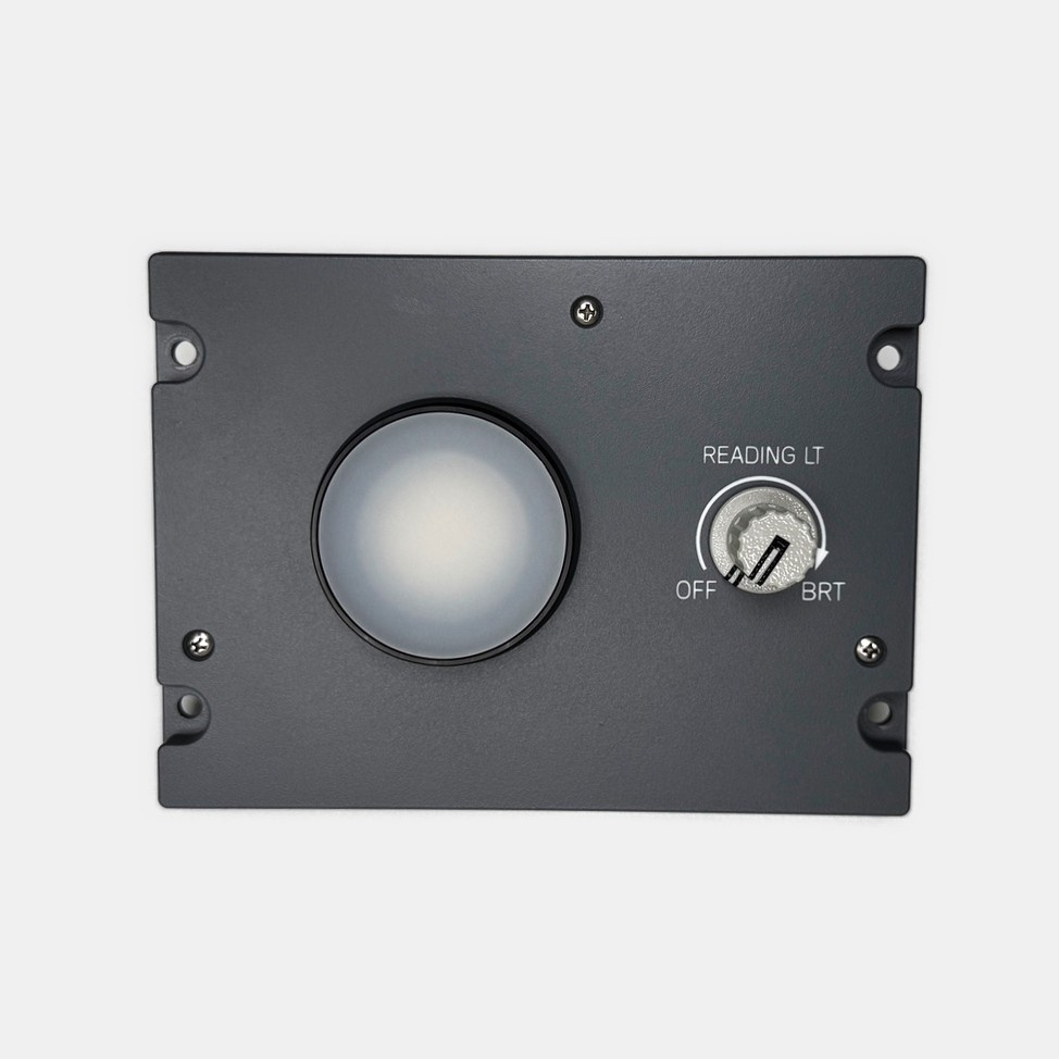 Reading light for the Aft Overhead Section position L3 or R3. The panel has a built-in dimmer and only needs to be supplied with 12 VDC.